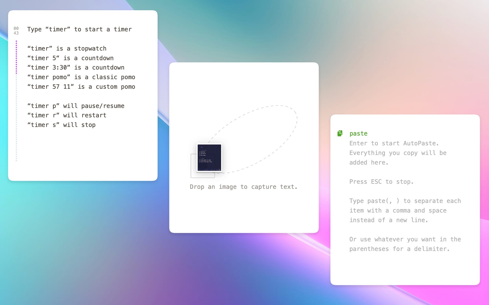 The app speaks plain English instead of requiring syntax memorization. Type "= 127.5 * 0.83" for instant calculations. Write "timer 45" for a countdown. Type "25 EUR in USD" for currency conversion. The natural-language processing feels like magic—your scratchpad understands intent without forcing you to learn command structures.