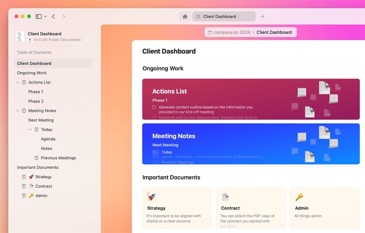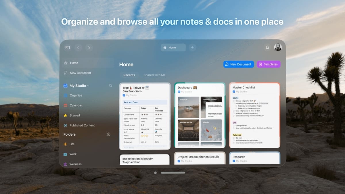 Craft makes organizing your thoughts effortless with its intuitive nesting system. You can create documents inside other documents, link pages together, and seamlessly navigate your ideas without feeling lost in a maze. It’s like Marie Kondo designed your notes: everything is where it should be, and it sparks joy.
