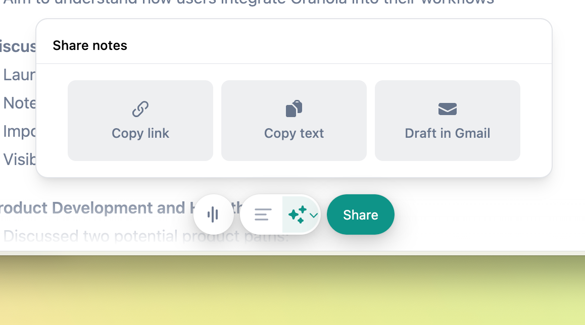 Granola integrates seamlessly with major meeting platforms like Zoom, Teams, and WebEx, making it incredibly easy to use. The app’s collaborative approach with AI—letting you guide the process rather than simply relying on it—sets it apart. It also cleans up your notes and makes them shareable with just a click, while the built-in AI chat feature lets you dive deeper into your notes or quickly generate follow-up emails.