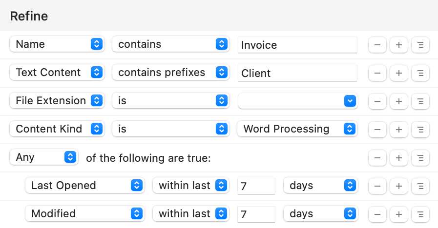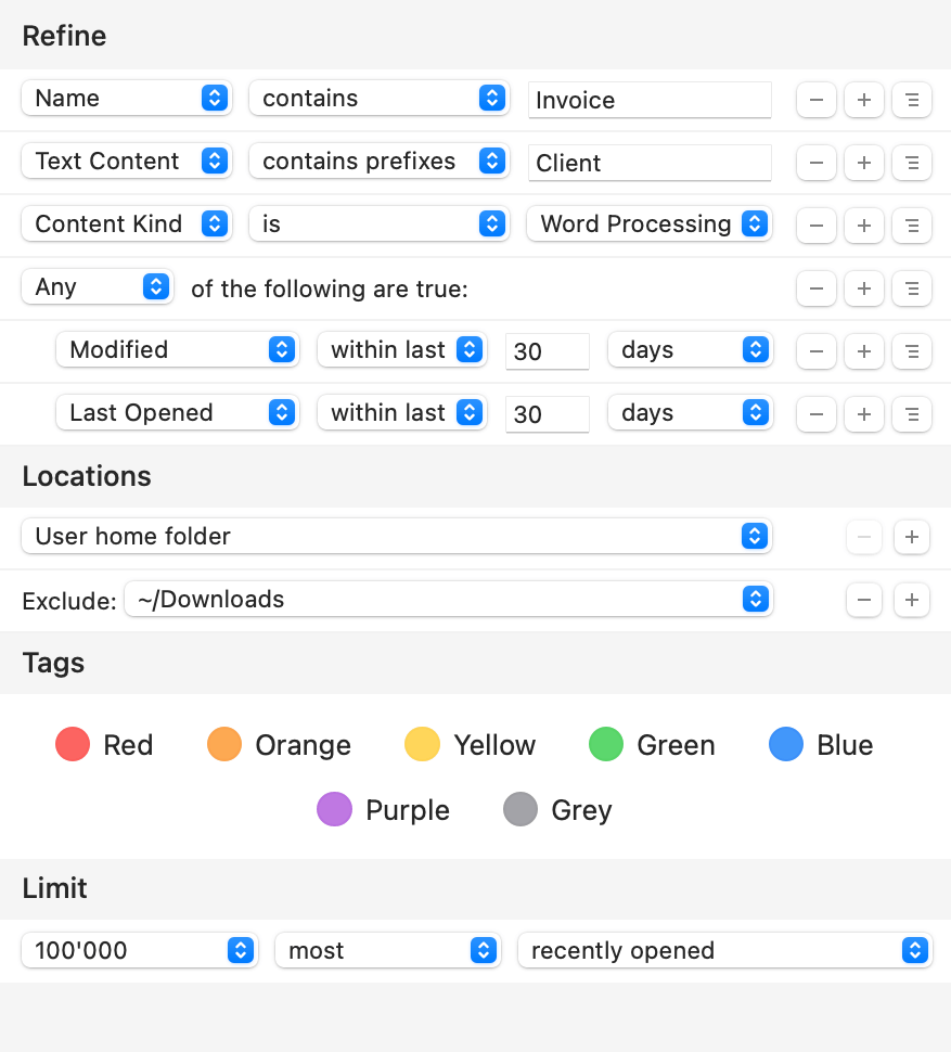 HoudahSpot offers precision file searching that feels almost futuristic. The Quick Search field lets you find files instantly with just a few keywords. If you need to narrow things down further, you can combine multiple search criteria, filtering by tags, text content, or even image dimensions.