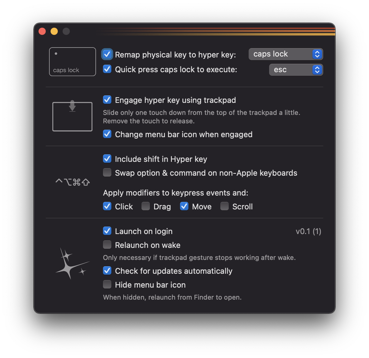 Minimalist doesn’t mean boring, and Hyperkey proves it. The app is sleek, blending perfectly with macOS’s native design philosophy. You won’t find unnecessary settings or flashy animations—it’s all about function over form. It's straightforward interface makes it easy to set up, even for users who aren’t particularly tech-savvy.