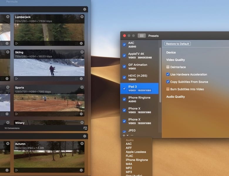 Additionally, Permute’s single large queue of files may feel limiting, as it doesn’t provide options to group or organize files in a more visually streamlined way. While these choices don’t diminish Permute’s core functionality, they can occasionally frustrate users who expect a more Mac-like experience, especially when smoother navigation is expected.