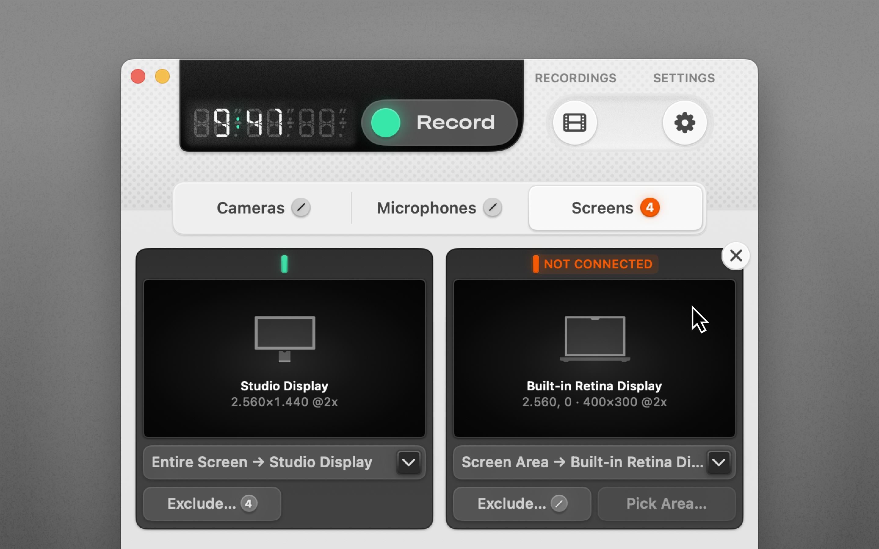 PolyCapture’s design aims for a clean and functional approach, offering intuitive controls and accessible features. While the menu bar integration and preview windows make it simple to check and manage recordings, we weren’t fans of the skeuomorphic design, which feels a bit dated. Some parts of the interface, like the countdown timer and elements in the menu bar, are almost unreadable, making usability challenging in these areas and requiring a bit of patience