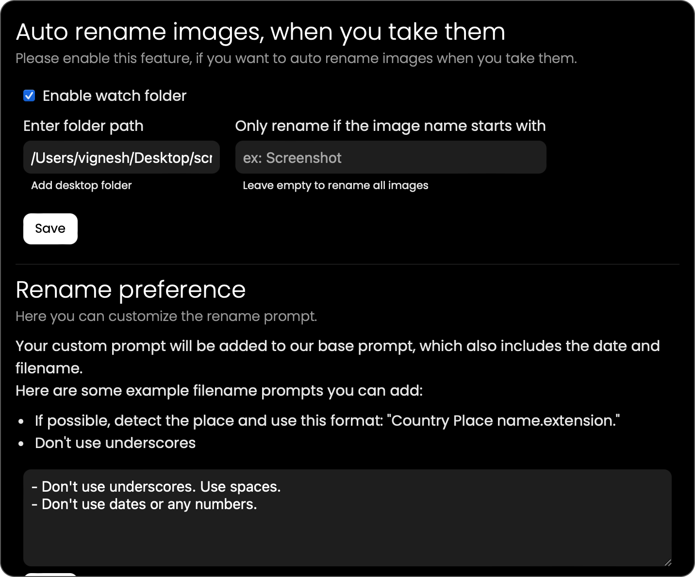 For those who want even more control, the app offers a fully customizable renaming system, letting you tweak how AI-generated names appear. You can even set it up to rename screenshots automatically the moment they are taken, so you never have to deal with vague filenames again.