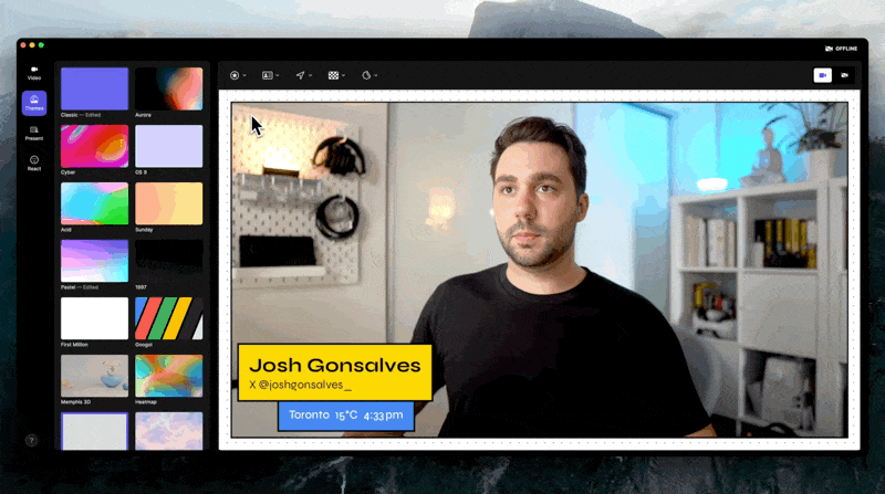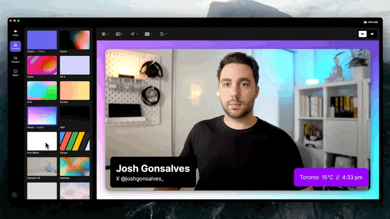 Boom's feature set extends far beyond simple video enhancement. The custom overlays allow you to display your name, location, job title, and even current weather or timezone directly on your video feed. You can also incorporate logos and personalized brand elements, turning every call and presentation into an opportunity for subtle brand reinforcement.